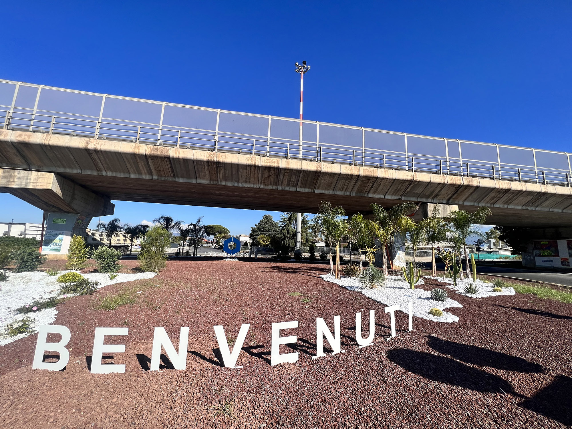 Un vero e proprio biglietto da visita del nostro territorio, che accoglie chi arriva da Sud con un grande “Benvenuti”.